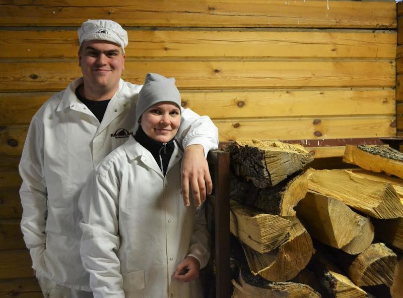 Asettelen aamuisin suolatut lihat kokonsa mukaan eri korkeuksille häkkeihin, jotka työnnetään saunaan. Isot lihat ylös ja pienemmät alas – näin kaikki kypsyvät samaan aikaan, koska lämpö pakkautuu ylös. Päivän aikana lämmitän saunaa metrisillä harmaalepän haloilla ja seuraan lämpötilaa, ettei tule liian kuumaa.