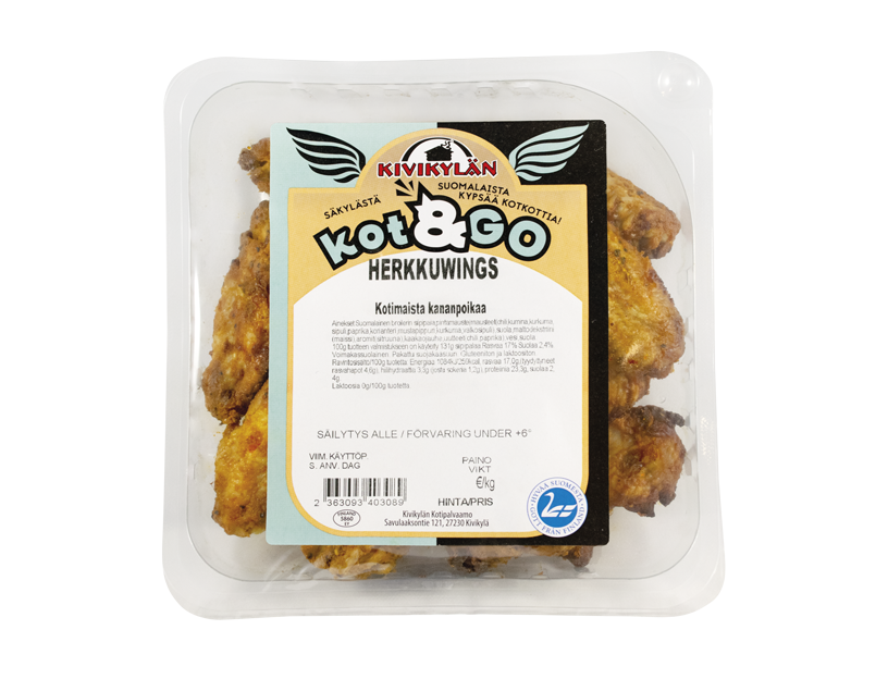Gluteeniton ja laktoositon. Säilytetään alle +6 asteessa. Voimakassuolainen. Laktoosia 0 g / 100 g tuotetta. 100 g tuotteen valmistukseen on käytetty 131 g siipipalaa. Pakattu suojakaasuun.