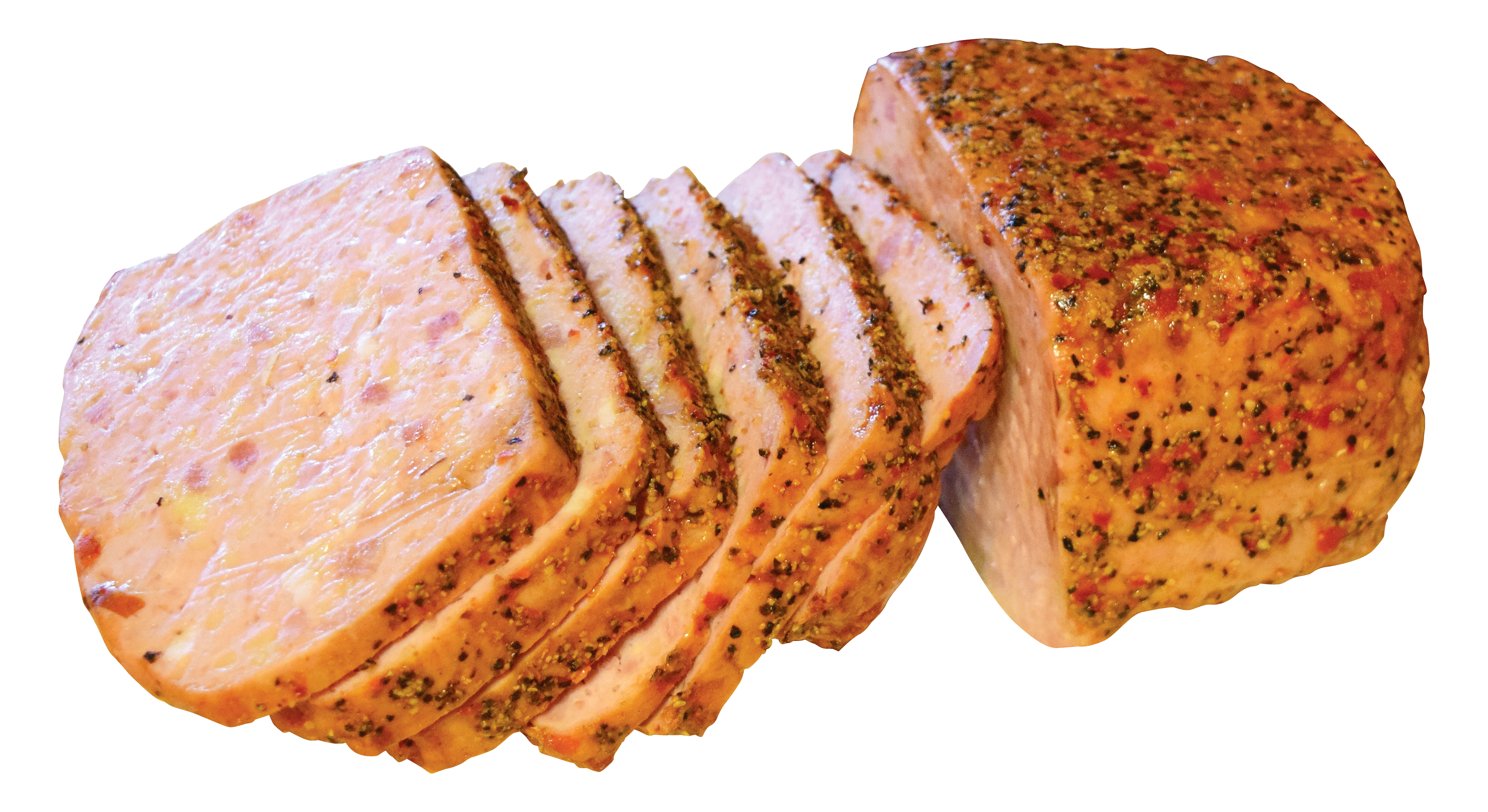 Suomalainen possunliha, vesi, juusto [(maito, hapate), voi, sulatesuolat (E331, E339, E452)], mausteet (mustapippuri, muskottipähkinä, maustepippuri, inkivääri, paprika, cayanne, mm. sinapinsiemen, sipuli, korianteri, jalopeno), suola, stabilointiaineet (E450, E451), dekstroosi (maissi), hapettumisenestoaine (E316), elintarvikevärit (E120, E160c, E150a ja c), siirappi, ananasmehu, punaviinietikka, tomaattipyree, glukoosi-fruktoosisiirappi, hydrolysoitu soija, säilöntäaineet (E250, E200, E202, E211), aromi (savu).