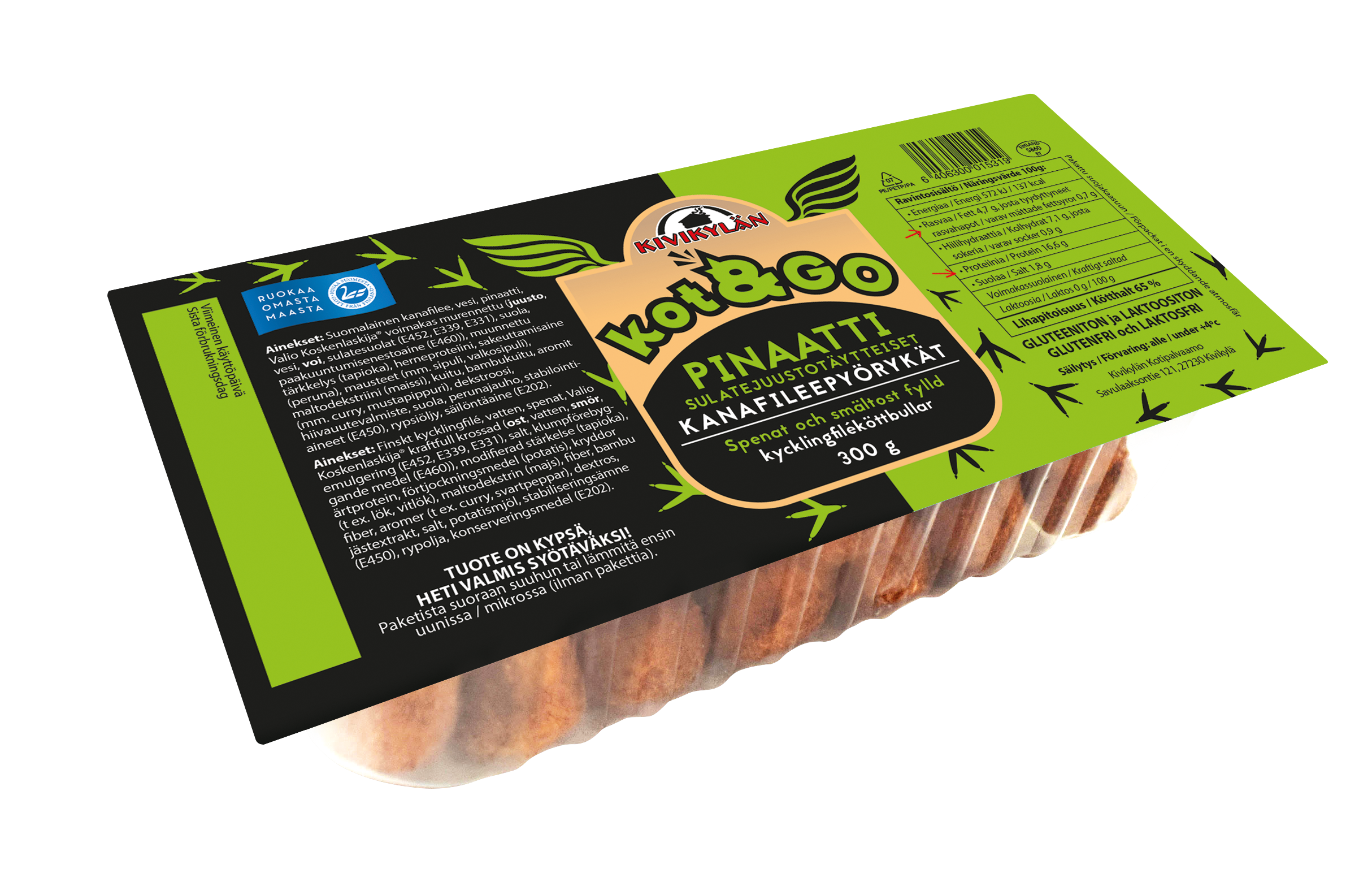 Tehty suomalaisen kanan fileestä! Täytetty pinaatilla ja sulatejuustolla. Tuote on kypsä, heti valmis syötäväksi tai lämmitä ensin vaikka mikrossa suuhun sopivaksi.