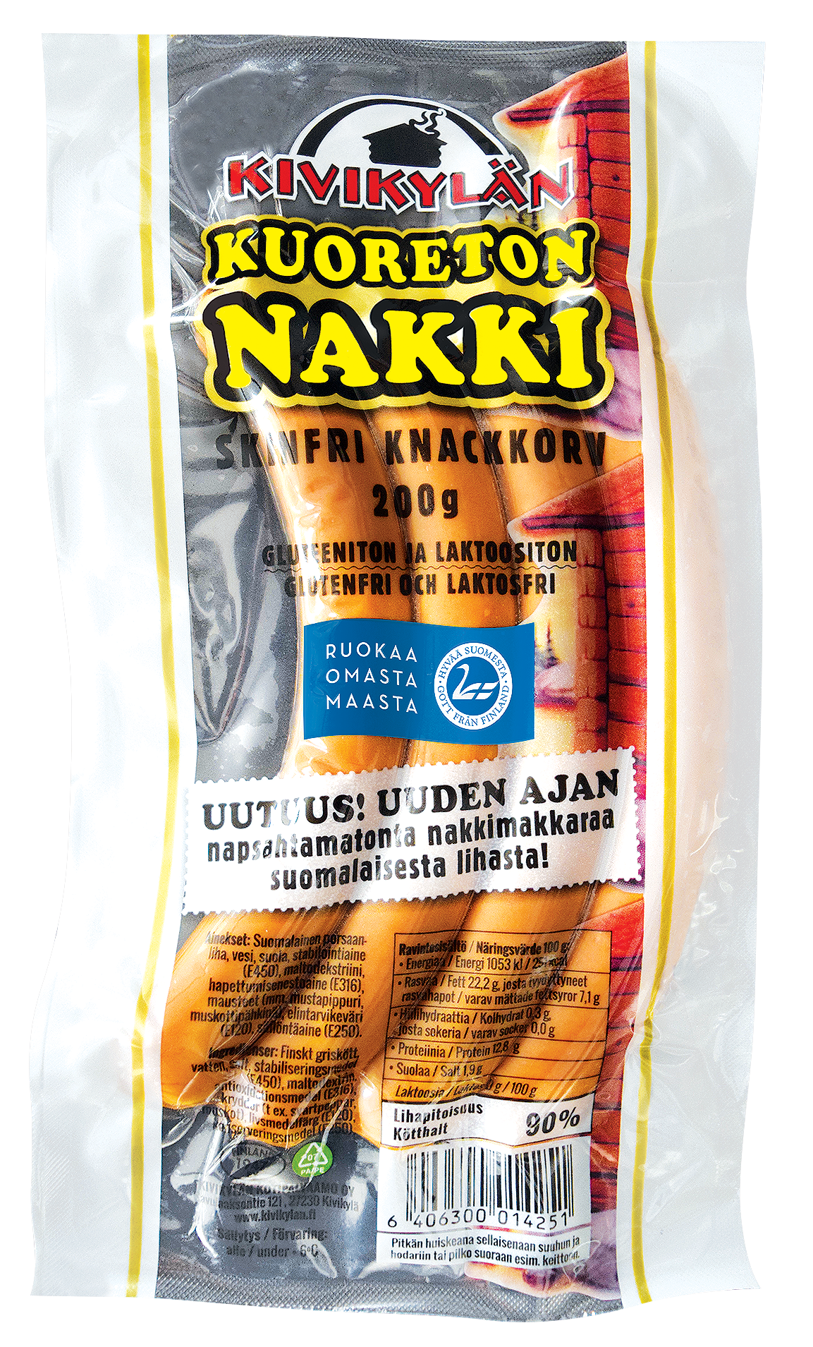 Uuden ajan napsahtamaton kuoreton pitkä nakki. 200g:n pakkauksessa 4 nakkia. Sopii mukavasti hodarin väliin tai suuhun sellaisenaan. Maku kuin Wanhanajan nakissa konsanaan, mutta ilman kuorta.