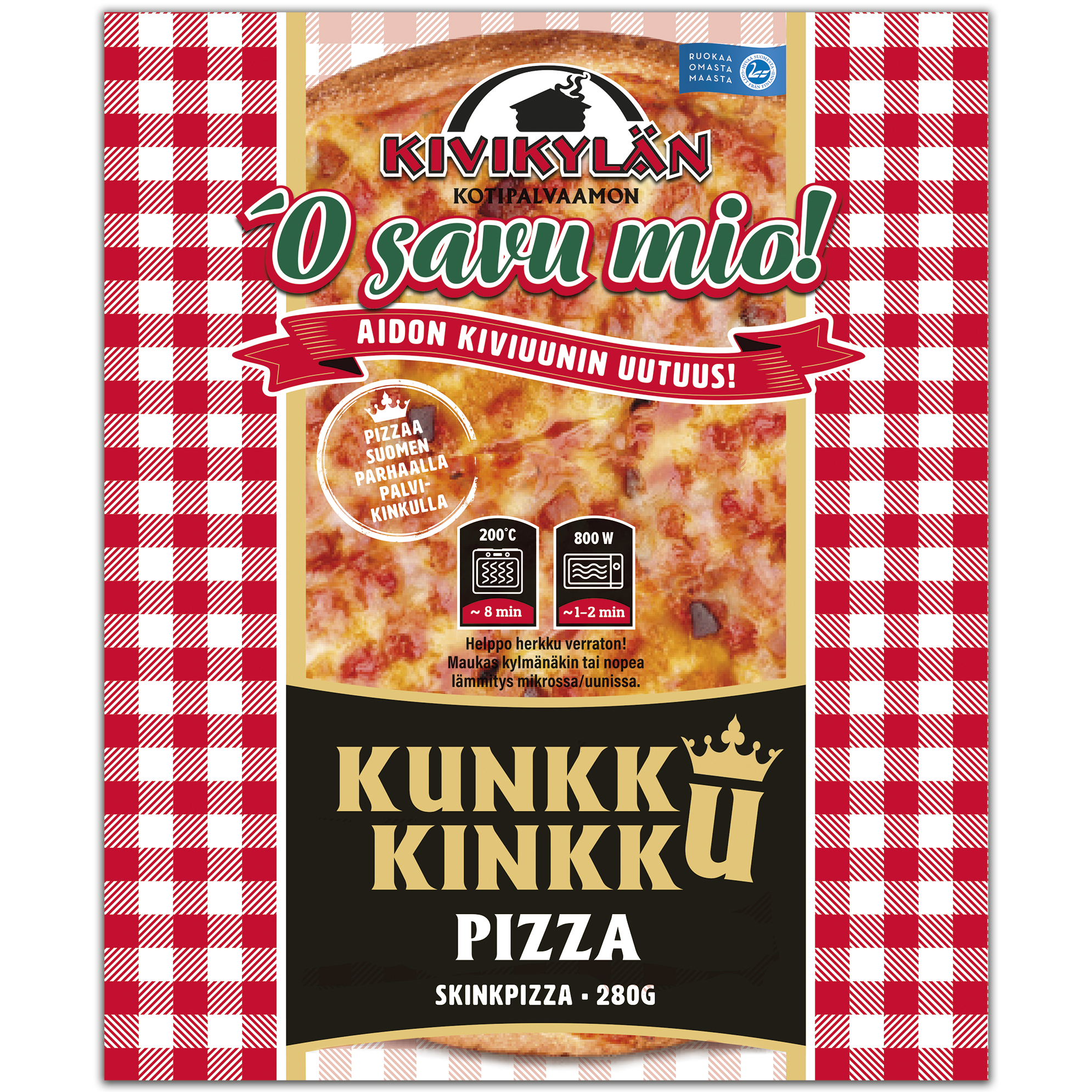 Suomalainen laadukas liha ja leppähaloilla lämmitettävä aito savusauna tekevät Kivikylän KunkkuKinkku pizzan maalaispalvikinkusta Suomen parhaan.